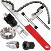Zestaw obejmuje 6 kluczowych narzędzi: skuwacz/rozkuwacz do łańcucha, klucz do szprych i centrowania kół, klucz do wolnobiegu, ściągacz do korb, klucz do suportu oraz bacik do kaset. Wszystko, czego potrzebujesz w jednym miejscu.