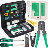 Komplet wyposażony jest w zaciskarkę obsługującą przewody 4P, 6P i 8P, umożliwiającą trwałe i solidne łączenie przewodów elektrycznych. Dodatkowo, wciskacz LSA pozwala na szybkie i precyzyjne łączenie przewodów w instalacjach telekomunikacyjnych, oszczędzając czas i koszty.