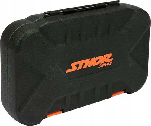 Zestaw został zapakowany w wytrzymałą, przenośną walizkę z tworzywa sztucznego, która zapewnia łatwy dostęp i przechowywanie wszystkich narzędzi w jednym miejscu. Ergonomiczny kształt narzędzi i grzechotki gwarantuje komfort pracy przez długie godziny.