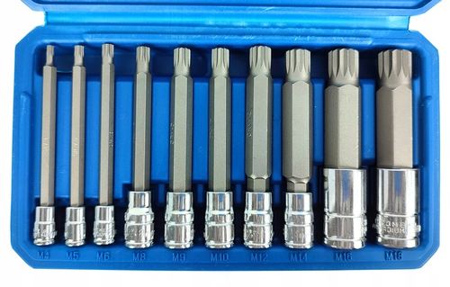 Ten wysokiej jakości zestaw kluczy SPLINE wykonany jest z wytrzymałej stali chromowo-wanadowej (CrV 50bv30+6150), co gwarantuje niezawodność i długotrwałe użytkowanie. Doskonale sprawdzi się w warunkach profesjonalnych, zapewniając precyzyjne i trwałe rezultaty.