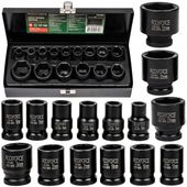 Zestaw obejmuje szeroki zakres 15 nasadek w rozmiarach od 10mm do 32mm, w tym krótkie i długie nasadki, umożliwiając dostęp do nawet najbardziej niedostępnych miejsc. Precyzyjnie wyżłobione gniazda i zabezpieczenia kulkowe chronią przed niepożądanym zsunięciem się nasadek, gwarantując bezpieczeństwo i efektywność pracy.