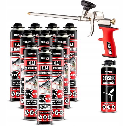 Klej poliuretanowy TOOLSEN do styropianu, oferowany w zestawie 10 puszek bezpośrednio od producenta, wyróżnia się wyjątkową przyczepnością do styropianu XPS i EPS, co zapewnia solidne i stabilne połączenie z płytami izolacyjnymi. Idealny do montażu izolacji termicznej fundamentów oraz wypełniania spoin, ten klej gwarantuje precyzyjne wyniki nawet w wymagających warunkach budowlanych.