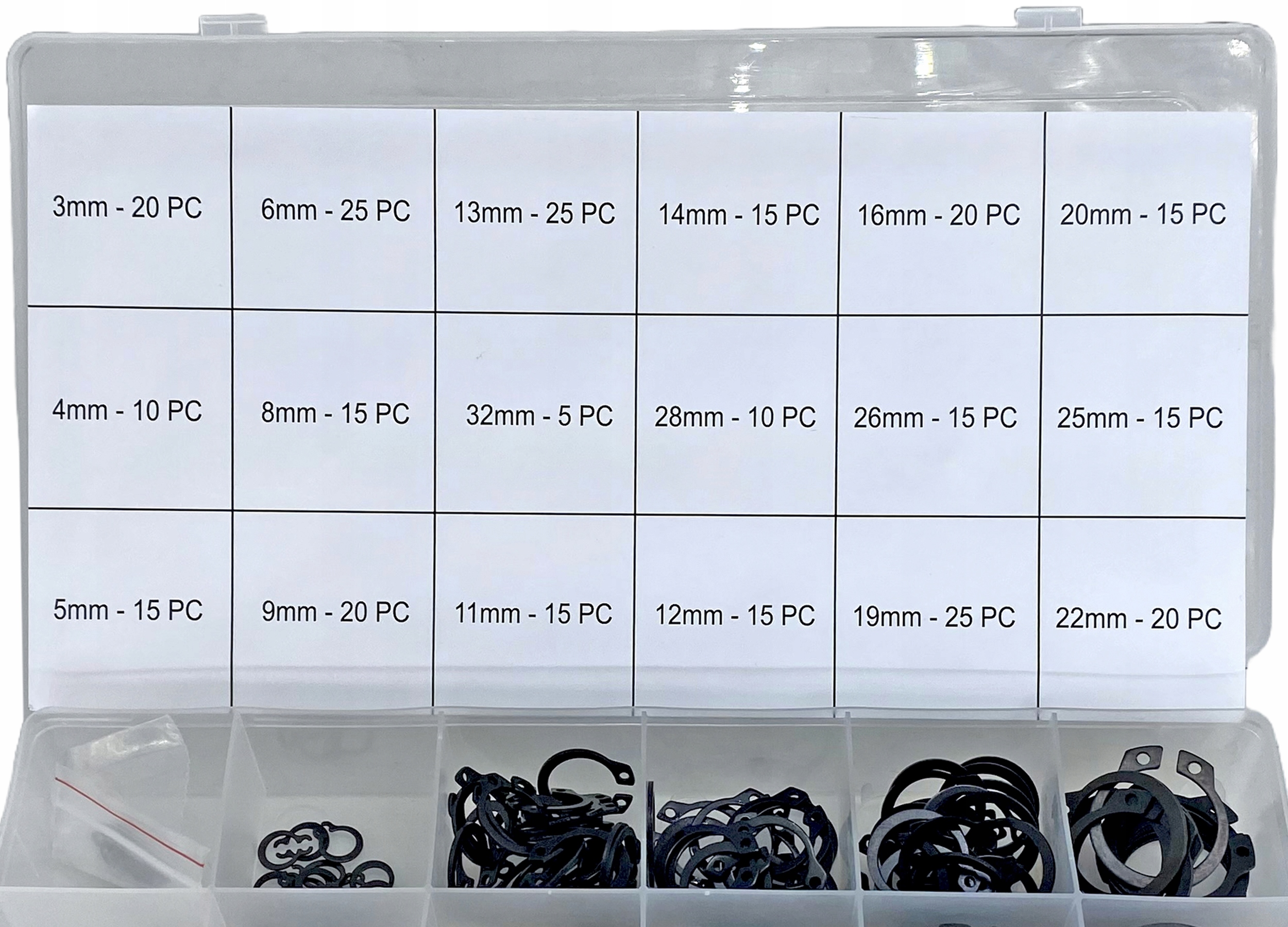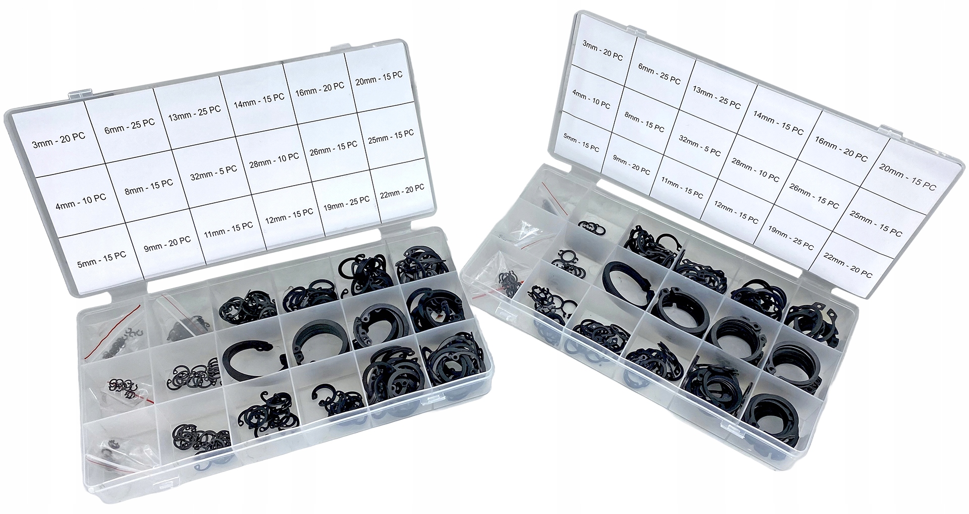 Zestaw pierścieni Segera 600 el. – praktyczny komplet wewnętrznych i zewnętrznych zabezpieczeń osi i wałów, wykonanych z wysokiej jakości stali sprężystej, niezastąpiony w każdym warsztacie.