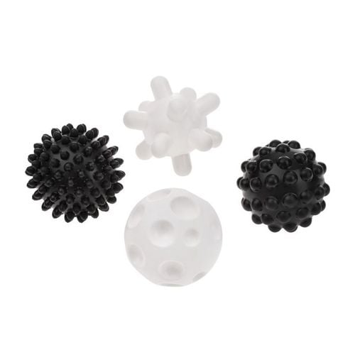Idealne do tego są piłeczki sensoryczne „akuku". Świetnie sprawdzą się podczas zabawy. Ich unikatowe kształty i struktura umożliwiają masaż i rozluźnienie napięcia mięśniowego. Zalecane przez fizjoterapeutów. Dostarczają wielu wrażeń czuciowych. W dodatku czarno-białe kolory doskonale stymulują wzrok niemowlaka, gdyż w pierwszych miesiącach życia dziecko nie rozróżnia barw. Piłeczki posiadają dziurki, dzięki czemu zabawa w wodzie będzie jeszcze fajniejsza.