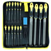 Zestaw składa się z 18 dokładnie dobranych elementów, w tym 4 pilników półgładzików o różnych kształtach (okrągły, półokrągły, trójkątny i płaski) oraz 12 pilników iglaków o zróżnicowanych kształtach, idealnie dopasowanych do różnorodnych zadań obróbki metalu, drewna i innych materiałów.