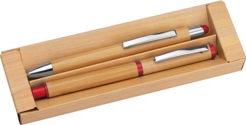 W skład zestawu wchodzą: długopis z niebieskim wkładem oraz ołówek automatyczny.
