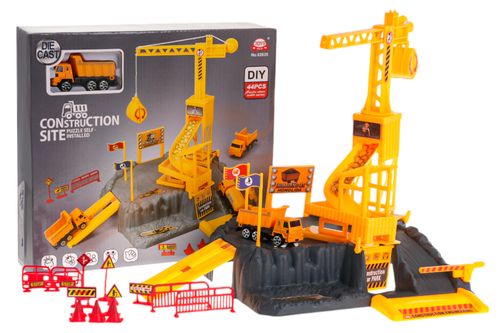 | - dźwig z placem budowy, - autko budowlane, - szlaban, - barierki - 6 x pachołek, - flagi, - znaki. |