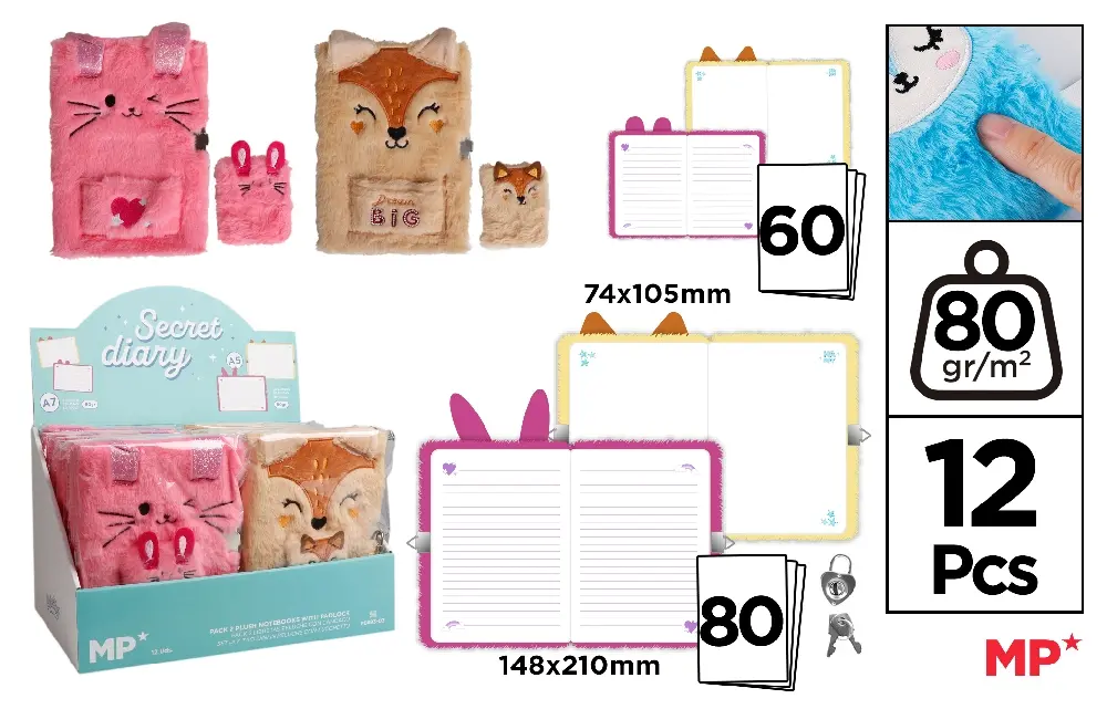 Odkryj zestaw pluszowych notesów A5 i A7, który doskonale łączy funkcjonalność z estetyką. W komplecie znajduje się notes A5 oraz notes A7. Notes a5 wyposażony jest w praktyczną kłódkę, co zapewnia bezpieczeństwo Twoich notatek. Idealny zarówno do szkoły, jak i biura, oferuje: