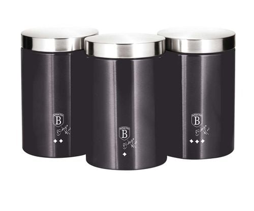 Zestaw 3 pojemników do przechowywania produktów sypkich takich jak kawa, herbata, cukier. Pojemniki z linii SHINY BLACK firmy Berlinger Haus.Wykonane ze stali lakierowanej na kolor czarny opalizujący.