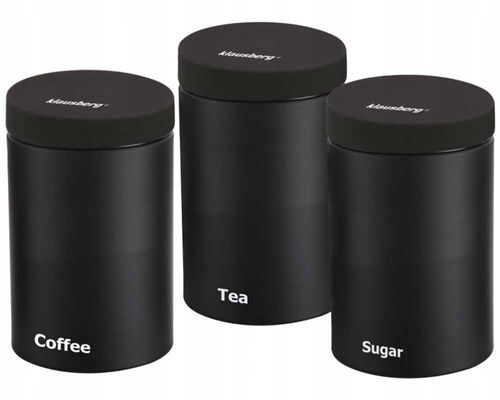 Zestaw 3 pojemników metalowych do przechowywania produktów sypkich. Produkt firmy KLAUSBERG
