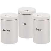 Na pojemnikach napisy Sugar, Coffee, Tea.