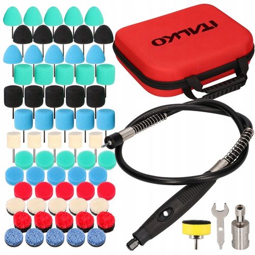 ✔️ Bogaty zestaw 69 wielofunkcyjnych akcesoriów do polerowania różnych elementów samochodu.