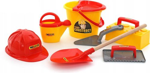 Zestaw zawiera wszystko co niezbędne by zapewnić kreatywne i rozwijające wyobraźnię oraz koordynację ruchową zajęcie. Mali murarze znajdą tu łopatę, kask ochronny, kielnię, pacę murarską i dużą foremkę z uchwytem - cegłę. Czego można chcieć więcej?