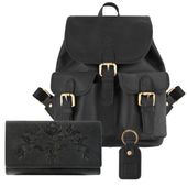 Jeżeli poszukujesz trafionego, ale i funkcjonalnego prezentu dla bliskiej Ci Kobiety, Paolo Peruzzi przygotowało niepowtarzalny set z bestsellerowymi produktami. Plecak damski skórzany to coraz częstsza, alternatywa dla toreb. Stworzona z myślą o klientkach ceniących wygodę oraz użytkowość. Idealny produkt do codziennego użytku! Pojemny portfel skórzany zaskoczy Cię ilością miejsc do przechowywania, a brelok sprawi, że problem ze zlokalizowaniem kluczy na dnie plecaka będzie Ci obcy. Spraw sobie lub bliskiej Ci kobiecie prezent w postaci zestawu upominkowego w stylu vintage! Plecak T-16 posiada pakowną komorę główną zamykaną troczkiem i dodatkowo klapą na magnes. Wewnątrz znajdziesz przegrodę na telefon i kieszonkę zapinaną na suwak, z przeznaczeniem na damskie akcesoria. Co więcej, dwie frontowe kieszenie na magnes okażą się niezastąpione, ponieważ z powodzeniem przechowasz w nich najczęściej używane przedmioty, takie jak klucze i żel antybakteryjny. Co więcej, w trosce o komfort użytkowania możesz regulować długość skórzanych szelek, by mimo obciążenia nosić plecaczek wygodnie. Charakterystyka plecaka Model: T-16-BLProducent: Paolo PeruzziKolor: czarny Materiał: skóra naturalna postarzanaIlość komór: 1Ilość kieszeni: 3Zapięcie: klapy na magnesy, skórzany troczekUchwyt: szelki, uchwyt do rękiPrzegroda na telefon: takMieści A4: nie Wymiary Wysokość: 32 cmSzerokość: 30 cmDługość: 11 cmWaga: 1,1 kg Model T-05 to wyjątkowy portfel skórzany z dużą ilością miejsca do przechowywania. Podwójna napa na przodzie sprawia, że nawet przy dużej zawartości portfel będzie zachowywał swój kształt i bez problemu uda Ci się go zapiąć. Wewnątrz portfela znajdziesz podwójną komorę na bilon (zapinaną na suwak), dwie przegrody na banknoty, sześć kieszonek na karty kredytowe oraz pół-transparentną kieszeń. Co więcej, tył jest odpinany na patkę, gdzie znajduje się dodatkowa transparentna komora, dwa schowki po długości oraz czternaście przegródek na karty kredytowe. Charakterystyka portfela Model: T-05-BLMateriał: skóra naturalna postarzanaProducent: Paolo PeruzziIlość przegród na karty: 20Przegroda na banknoty: 2Kieszeń na bilon: tak, podwójna zapinana na suwak Ilość schowków: 4Orientacja: poziomaPrzegrody przeźroczyste: 2 Wymiary Wysokość: 10 cmSzerokość: 17,5 cmGrubość: ok.: 3,5 cm Brelok T-86 został wykonany z wysokojakościowej skóry naturalnej hunter w kolorze czarnym. Klasyczny prostokątny kształt i wyróżniające się na froncie logo producenta nadają breloczkowi modnego designu. Brelok do kluczy wyposażono w solidne, kółko sprężyste w kolorze złotym, na którym z łatwością mocujesz klucze. Charakterystyka breloczka Model: T–86–HBL Producent: Paolo Peruzzi Materiał: skóra naturalna hunter Mocowanie: kółko sprężyste Kolor: czarny Kolor okuć: złoty Zastosowanie: do kluczy Wymiary Długość: 7 cm Długość z mocowaniem: 9 cm Szerokość: 4 cm Średnica zewnętrzna mocowania: 3 cm MW