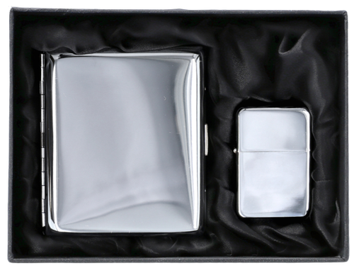 Przedmiotem niniejszej aukcji jest Zestaw na prezent w postaci Papierośnicy oraz Zapalniczki Benzynowej!