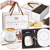 Ten wysokiej jakości zestaw prezentowy z podgrzewaczem na kabel, kubkiem ceramicznym, pokrywką i łyżeczką zapewnia stałe ciepło na poziomie około 55°C, dzięki czemu Twoja kawa, herbata czy kakao pozostają smaczne i przyjemne przez cały dzień. Elegancki design i precyzyjne wykonanie gwarantują niezawodne działanie w biurze lub w domu, gdzie każdy łyk to czysta przyjemność.