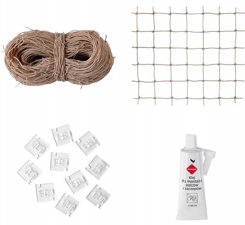 W zestawie znajdziesz wszystko, co jest potrzebne do profesjonalnego montażu siatki: siatkę o wymiarach 6 x 2 m, aż 80 sztuk zaczepów mocujących oraz klej silikonowy do ich trwałego zamocowania. To kompleksowe rozwiązanie oszczędzi Twój czas i pieniądze.