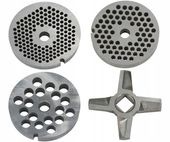 ✔️**KOMPLETNY ZESTAW 4 ELEMENTÓW** - 3 sitka o różnych średnicach oczek plus dwustronny nóż zapewniający pełną funkcjonalność maszyny do mielenia.