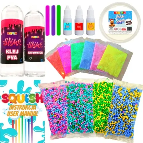 Ten kreatywny zestaw do robienia Slime marki SQUISH™ nie tylko zapewnia doskonałą zabawę dla Twojego dziecka, ale także stymuluje jego wyobraźnię i kreatywność. Zestaw składa się z aż 20 elementów, w tym kleju, aktywatora, kulek Crunchy, barwników i brokatu, które Twoje dziecko może dowolnie łączyć, tworząc unikalne efekty.