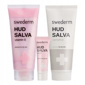 Ten wysokiej jakości zestaw maści Swederm Hudsalva Vitamin E (100 ml + 8 ml) oraz Hudsalva Sensitive (100 ml) wyróżnia się nie tylko eleganckim i praktycznym opakowaniem, ale także wyjątkową formułą bogatą w witaminę E, glicerynę i masło shea. Szybko koi podrażnienia, intensywnie nawilża i regeneruje skórę suchą, zapewniając długotrwały komfort na dłoniach, łokciach, stopach i ustach.