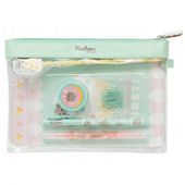 Zapakowany w elegancką, przezroczystą saszetkę wykonaną z wytrzymałego PCV, zestaw jest nie tylko estetyczny, ale również praktyczny. Saszetka ma wymiar ok. 22 x 16 x 2 cm, co sprawia, że idealnie nadaje się do wrzucenia do plecaka czy torby. Dzięki jej przeźroczystości, możesz szybko znaleźć potrzebny przedmiot, co jest dużym ułatwieniem w trakcie intensywnych lekcji.