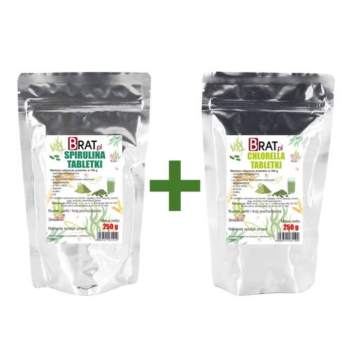 Zestaw tabletek - Chlorella 250g + Spirulina 250g