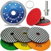 ✔️ Trzy stopnie ziarnistości tarcz polerskich (50, 100, 200) do kompleksowego szlifowania i wygładzania krawędzi, pracujących na sucho dla efektywnej obróbki gresu, ceramiki i spieków.