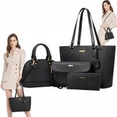 Zestaw gwarantuje pełną praktyczność w każdym środowisku, od biura po wieczorne wyjścia. Wykonany z wodoodpornego PU, odpornego na codzienne wyzwania, umożliwia swobodne noszenie na ramieniu, crossbody czy w dłoni. Jego solidna konstrukcja zapewnia trwałość i bezpieczeństwo zawartości, pozwalając cieszyć się stylem bez ograniczeń.