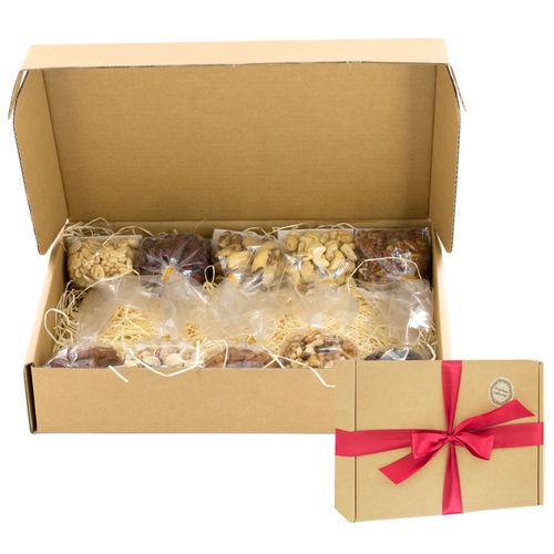 Szukasz idealnego prezentu? Zestaw Upominkowy Brat.pl to zdrowy i pyszny sposób, by sprawić radość bliskim! Elegancko ozdobione pudełko kryje bogactwo orzechów i suszonych owoców, które dodadzą energii. To idealny wybór jako prezent lub zdrowa przekąska..