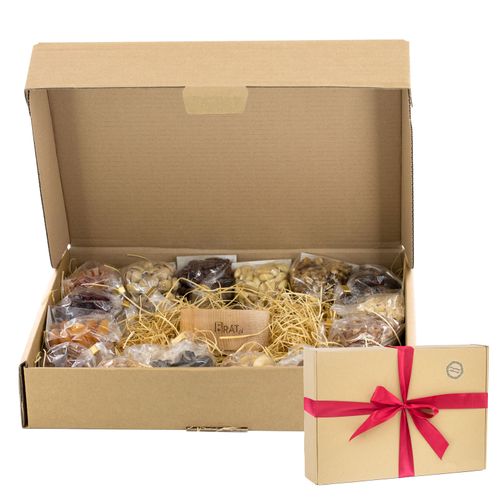 Podaruj bliskim smakowite wspomnienia! Zestaw Upominkowy Premium od Brat.pl to wyjątkowy prezent pełen zdrowych i pysznych przekąsek. Starannie wyselekcjonowane orzechy, owoce suszone i prażone, w eleganckim pudełku, sprawią radość każdemu, kto ceni naturalne i smaczne produkty. Idealny na prezent, a także jako elegancka przekąska.