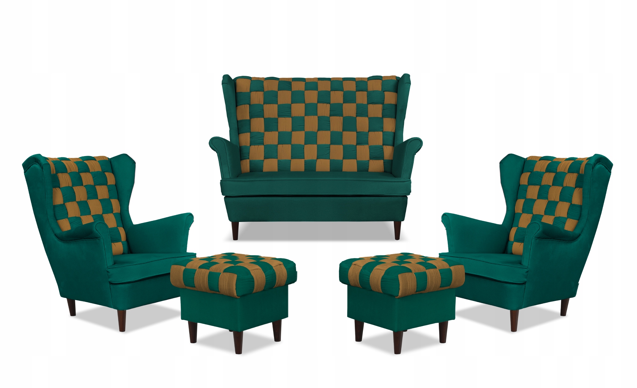 1. Kup zestaw mebli wypoczynkowych CAROL DUO Sofa Uszak dwuosobowa + 2x Fotel Uszak + 2x pufa