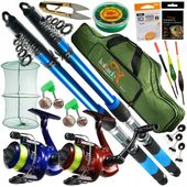 ✅ Elementy zestawu: haczyki, kołowrotek, pokrowiec, spławiki, stopery, świetliki, żyłka