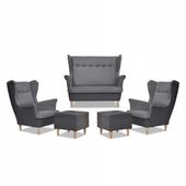 1. Kup zestaw mebli wypoczynkowych ARI DUO Sofa Uszak dwuosobowa + 2x Fotel Uszak + 2x pufa