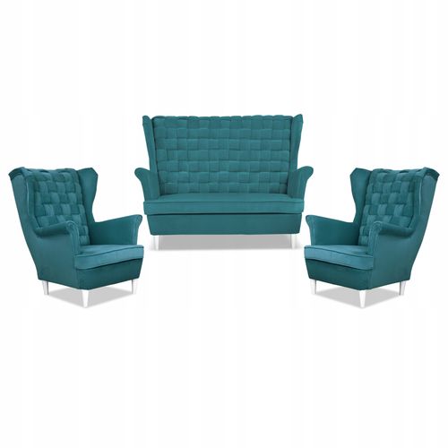 1. Kup zestaw mebli wypoczynkowych Carol Sofa Uszak dwuosobowa + 2x Fotel Uszak