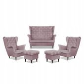 1. Kup zestaw mebli wypoczynkowych Carol Sofa Uszak dwuosobowa + 2x Fotel Uszak + 2x pufa