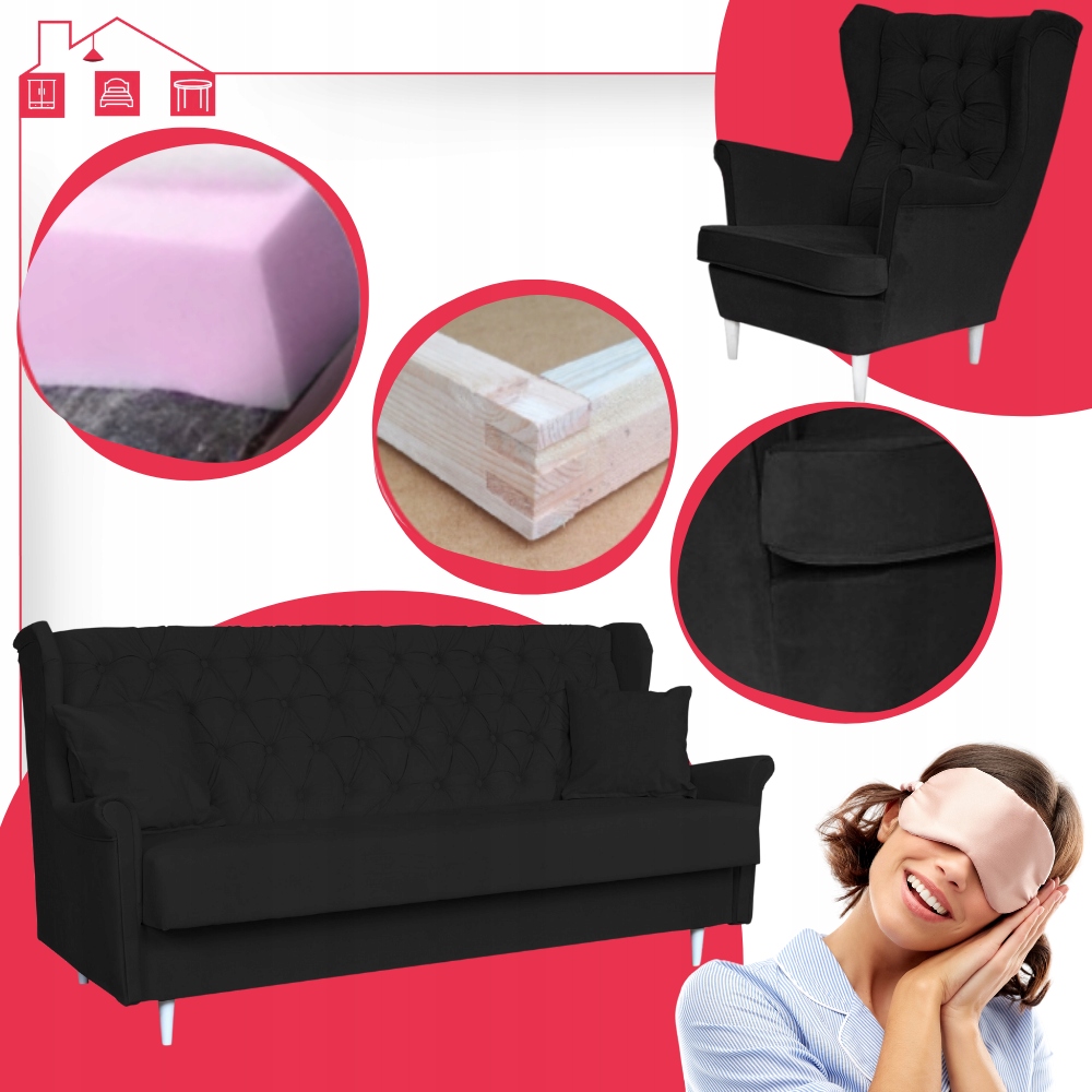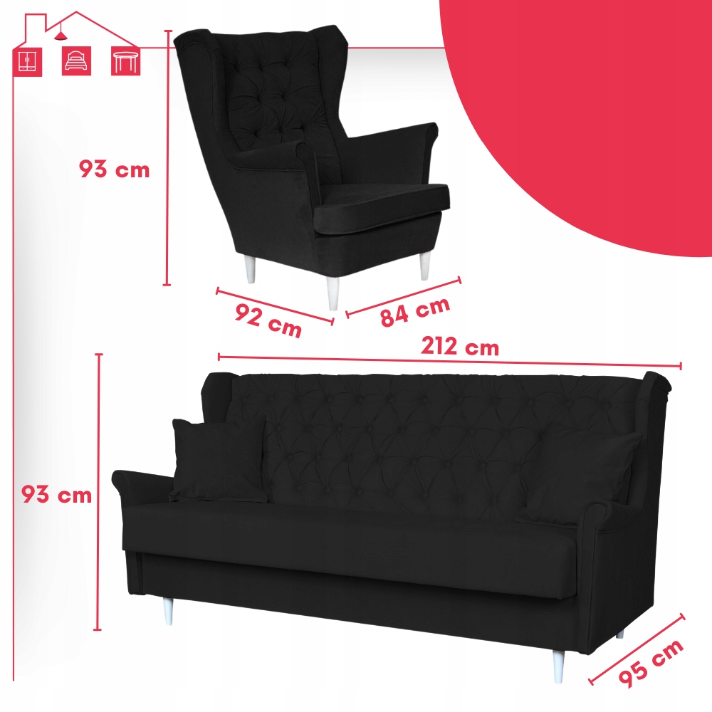 ✅ Kompleksowy zestaw wypoczynkowy zawierający 2 fotele i wersalkę uszak tworzy harmonijną całość, zapewniając wystarczająco miejsca do siedzenia dla rodziny lub gości;