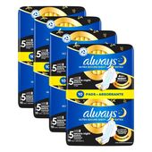 Ten wysokiej jakości zestaw Always Ultra Secure Night Extra (rozmiar 5) z 4 opakowaniami po 10 podpasek ze skrzydełkami zapewnia niezawodną potrójną ochronę, zaprojektowaną specjalnie na noc. O 9% większy przód i o 85% większy tył w połączeniu z zaawansowaną technologią LeakGuard chronią z każdej strony, eliminując obawy o przecieki i pozwalając na głęboki, relaksujący odpoczynek.