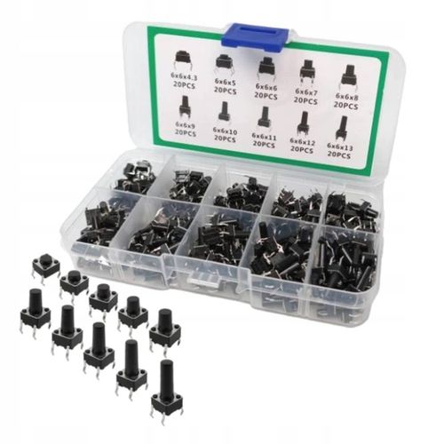 Różnorodność kształtów, rozmiarów i sił nacisku przycisków w tym zestawie zapewnia Ci nieograniczone możliwości zastosowań. Bez trudu dopasujesz je do swoich unikalnych potrzeb, niezależnie od tego, czy pracujesz nad pilotem zdalnego sterowania, urządzeniem audio, czy wyjątkowym projektem DIY.