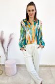 Zielona wzorzysta koszula damska Picasso to wyrazisty element garderoby, który dodaje stylizacjom świeżości i naturalnej elegancji. Odcień głębokiej, butelkowej zieleni pięknie podkreśla karnację i doskonale współgra z szeroką gamą kolorów, od klasycznych neutralnych barw po złote i ciepłe dodatki. Koszula wykonana jest z wysokiej jakości wiskozy, co sprawia, że jest niezwykle przewiewna i przyjemna w dotyku.