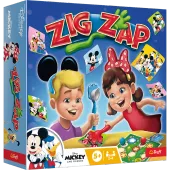 „Zig Zap” to dynamiczna gra, w której łapiecie packami określone karty z postaciami Disneya. Wszystko zależy od tego, co znajduje się na opasce na Waszej głowie. Chwyćcie packi i przygotujcie się do szalonej rozgrywki, której zasady zmieniają się nieustannie! Zawartość opakowania: • 4 packi, • 4 opaski, • 6 zestawów elementów postaci, • 4 pionki, • plansza, • 45 kart, • instrukcja.