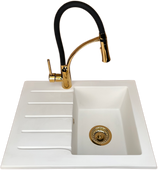 Zlewozmywak jednokomorowy z ociekaczem ARAGON biały z lewym ociekaczem + bateria złota NEXO723.45 zł