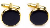 Spinki te zapewniają niezachwianą stabilność, nawet podczas intensywnych ruchów, dzięki solidnej konstrukcji o średnicy około 1,7 cm. Ich unikatowy, klasyczny wzór z gładką powierzchnią w dominujących kolorach czarnym i złotym gwarantuje, że zawsze wyglądasz bezbłędnie, bez obaw o utratę formy czy blasku.