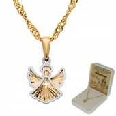Ten klasyczny komplet biżuterii z medalikiem w kształcie aniołka został wykonany z najwyższą starannością, łącząc trwałe materiały o próbie 333 (8K) dla złota i 925 dla srebra złoconego. Jego precyzyjne detale zapewniają nie tylko estetyczny wygląd, ale także niezawodną jakość, która przetrwa lata, idealnie nadając się na prezent z okazji chrztu, komunii czy innej ważnej uroczystości.
