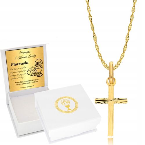 Elagancko pakowany w estetycznym pudełeczku jubilerskim, ten złoty łańcuch z krzyżykiem jest idealnym prezentem dla każdej kobiety. Bez względu na okazję, ta biżuteria doda odbiorcy blasku i stylu.