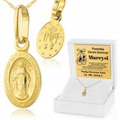 Ten wyjątkowy złoty medalik z łańcuszkiem Matka Boska, wykonany z próby 585, zachwyca subtelnym, klasycznym designem, który idealnie komponuje się z codziennymi stylizacjami i uroczystościami. Precyzyjny wzór Matki Boskiej, połączony z delikatnym splotem singapore łańcuszka, zapewnia nie tylko elegancję, ale i trwałe wrażenie, które przetrwa lata.