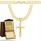 Ten wysokiej jakości łańcuszek męski Garibaldi z krzyżykiem, wykonany z pełnego srebra próby 925 i pokryty grubą warstwą 14-karatowego złota próby 585, wyróżnia się solidną konstrukcją i precyzyjnym włoskim wykończeniem. Splot Garibaldi zapewnia wyjątkową wytrzymałość, a głębokie polerowanie nadaje mu trwały, olśniewający blask, który zachowuje się przez lata.