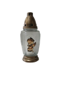 Znicz całoroczny złoty aniołek w kształcie trapezu.