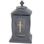 Ten ceramiczny znicz Zegar ZC19 w grafitowym kolorze z eleganckim złotym krzyżem wyróżnia się solidną konstrukcją, która łączy klasyczną formę przypominającą kapliczkę z precyzyjnym wykończeniem. Wysokiej jakości materiały zapewniają, że znicz zachowuje swój wygląd i stabilność, nawet w zmiennych warunkach, umożliwiając godne upamiętnienie bliskich przez cały rok.