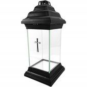 Ten wysokiej jakości lampion kapliczka z krzyżem, wykonany z grubego i bezbarwnego szkła, wyróżnia się solidną konstrukcją i eleganckim wykończeniem. Srebrny krzyż na szybie dodaje subtelnego blasku, a szeroka podstawa zapewnia niezachwianą stabilność, idealnie nadając się do długotrwałego użytkowania w różnych warunkach.