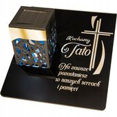 Wykonany z trwałych materiałów, w tym szkła akrylowego, znicz jest całkowicie odporny na wilgoć i ekstremalne temperatury, przewyższając tradycyjne rozwiązania pod względem wytrzymałości. Tabliczka z sentencją, nachylona pod subtelnym kątem i wygrawerowana niezniszczalnym grawerem, zapewnia czytelność i elegancję przez lata, bez blaknięcia czy uszkodzeń.